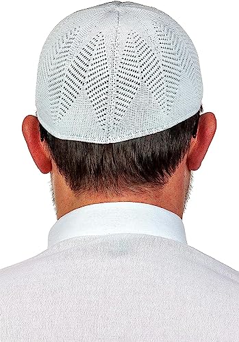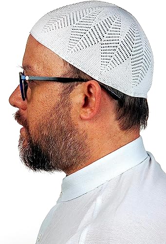JAZZEEL - طاقية إسلامية للرجال من جزيل بمقاسات قياسية، طاقية كلاسيكية ومريحة بنمط كوفي للصلاة اليومية والمناسبات الدينية، غطاء رأس بسيط ومحترم - أبيض