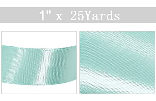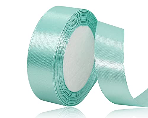 JAZZEEL - بكرة شريط ساتان من قماش البوليستر مناسبة لتغليف الهدايا، والأعمال اليدوية، وصنع الفيونكات، وتزيين الأكاليل، ومشاريع الخياطة، وحفلات المواليد والمناسبات من جازيل- أخضر مينت سادة- 25 ملم × 22 متر