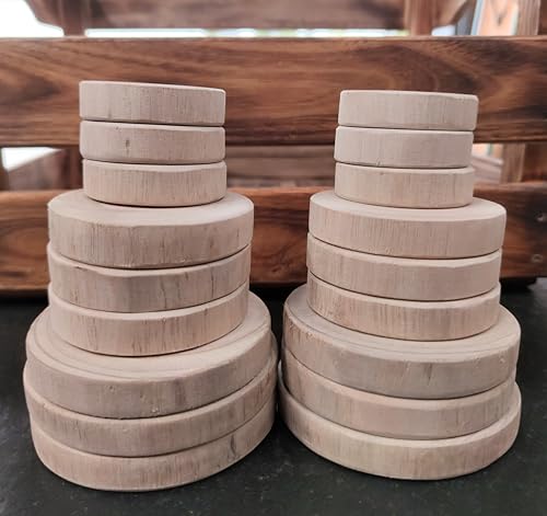 JAZZEEL - أقراص خشبية مستدامة من شجر هولز ميلر، أطباق خشبية يدوية الصنع وقواعد أكواب للحرف اليدوية، ألواح خشبية دائرية مزخرفة من جازيل (مختلطة)