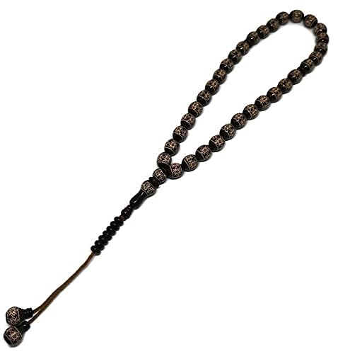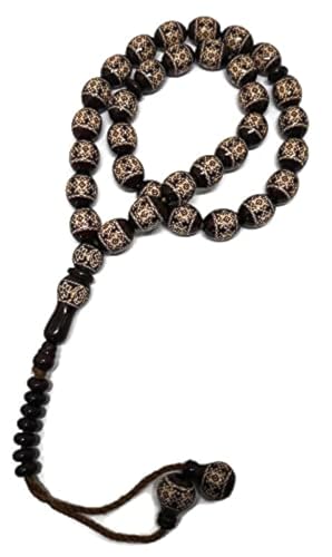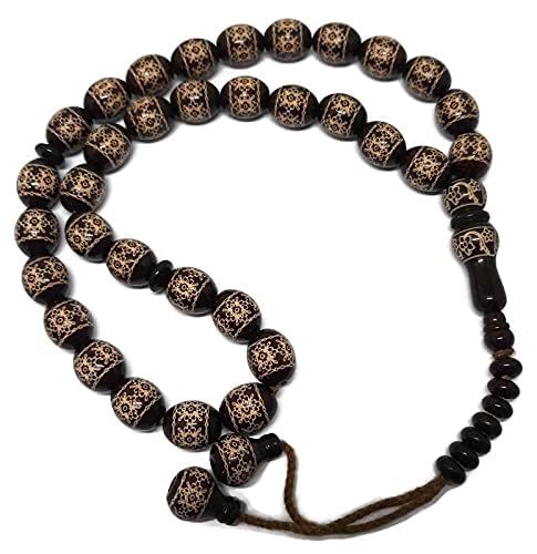 JAZZEEL - سبحة خشبية مكونة من 33 خرزة بتصميم جميل مطبوع على خرز بني داكن، مسبحة صلاة اسلامية للعيد ورمضان من جازيل، هدية اسلامية من الامين