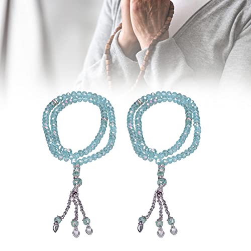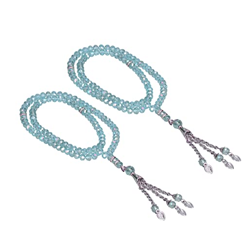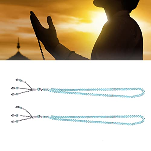 JAZZEEL - سبحة صلاة اسلامية من جازيل، عبوة من قطعتين مع 99 خرزة بلون ازرق بحري، مسبحة لامعة للعبادة الاسلامية، تسبيح وسوار للرجال والنساء، اكسسوار تأمل الذكر بنمط بوهو