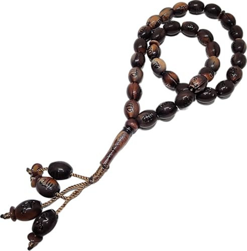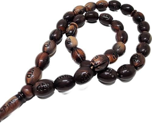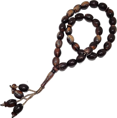 JAZZEEL - سبحة صلاة اسلامية مع 99 خرزة بيضاوية منقوشة باسماء الله محمد للرجال والنساء، مناسبة كهدية للعيد ورمضان والعيد من جازيل، لون اسود