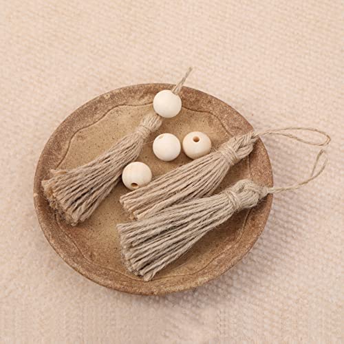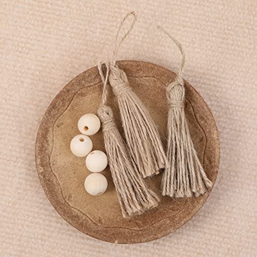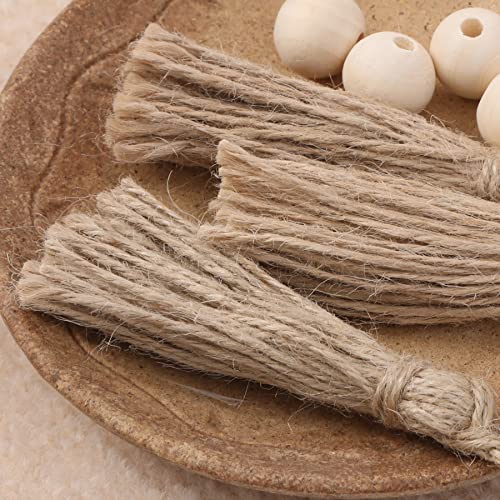 JAZZEEL - شراشيب من الجوت الطبيعي من جازيل، 30 قطعة 14 سم شراشيب خيش مع حبل للحرف اليدوية وديكور بيت المزرعة وأكاليل الخرز الخشبية التي تصنعها بنفسك، زينة الكريسماس، ومشاريع تزيين المنزل الريفية.