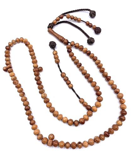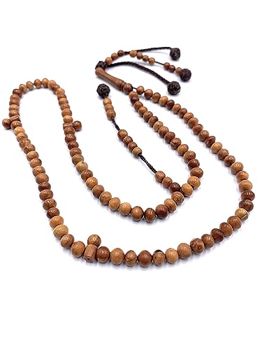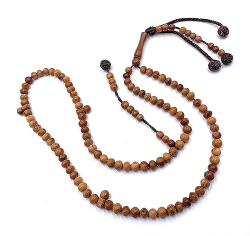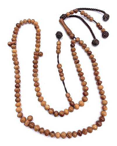 JAZZEEL - سبحة من خشب جوز الكوكا الطبيعي من جازيل، مع 100 خرزة وعداد للصلاة الاسلامية، مسبحة متينة للرجال والنساء للتامل اليومي والتامل الروحي، اكسسوار هدية اسلامية