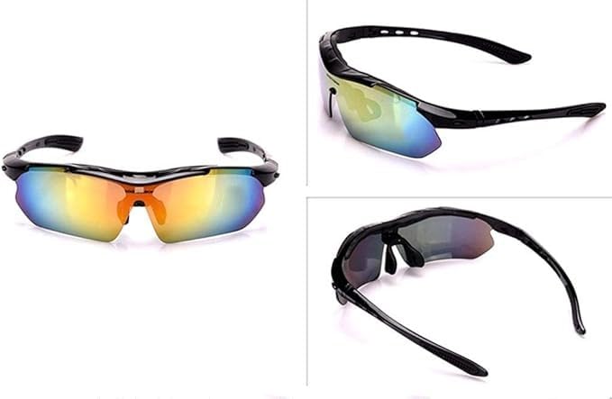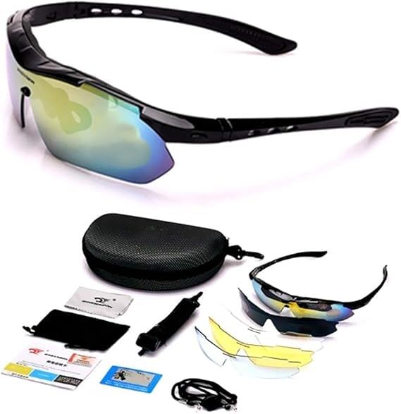 JAZZEEL - نظارات شمسية بعدسات مستقطبة مع 5 عدسات قابلة للتبديل، حماية من الأشعة فوق البنفسجية UV400 للرجال والنساء، نظارات للدراجات الجبلية وركوب الدراجات على الطرق من جزيل، إطار اسود