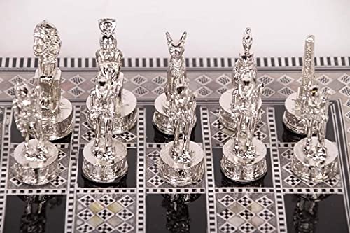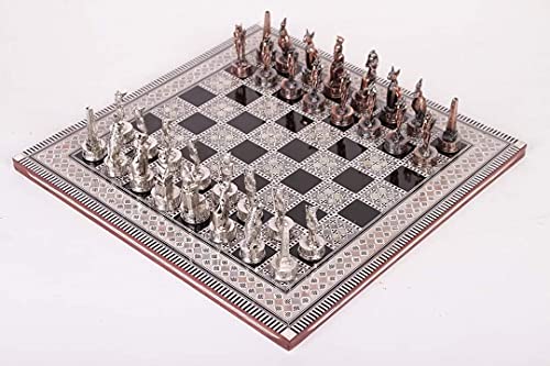 JAZZEEL - مجموعة شطرنج نحاسية ذات طابع فرعوني، لعبة لوحية كاملة للأعمار من 12 سنة فما فوق، لعبة استراتيجية مصر القديمة مصنوعة يدويا مع قطع مفصلة بشكل معقد من جازيل