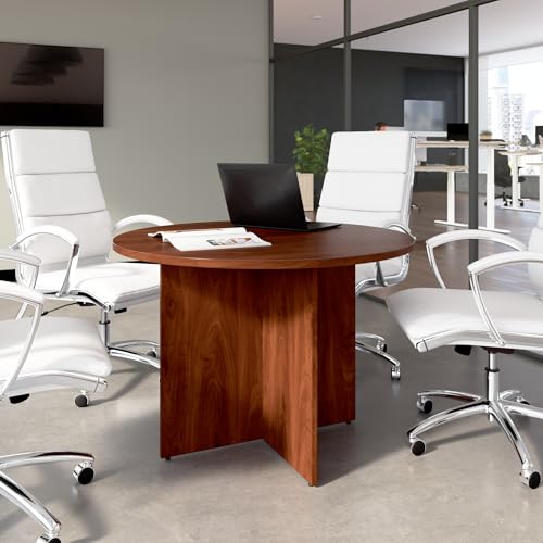 JAZZEEL - طاولة مؤتمرات دائرية، مكتب اجتماعات بقاعدة خشبية، 107 سم، هانسن تشيري، أثاث مكتبي احترافي للتعاون في غرفة الاجتماعات، سطح عمل متين، تجاري شديد التحمل من جازيل