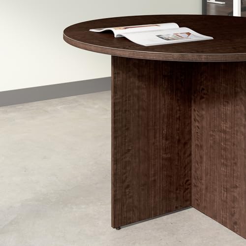 JAZZEEL - طاولة مؤتمرات دائرية من جازيل، مكتب اجتماعات بقاعدة خشبية، 107 سم، لون موكا تشيري، اثاث مكتبي احترافي للتعاون في غرفة الاجتماعات، سطح عمل متين، تجاري شديد التحمل