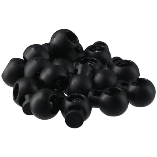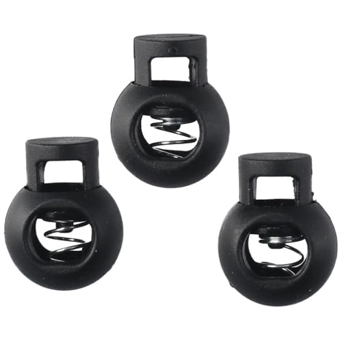 JAZZEEL - أقفال سلك دائرية من جازيل، عبوة 50 قطعة من سدادات زنبركية بلاستيك، مثبتات بفتحة واحدة قابلة لإعادة الاستخدام لأربطة الأحذية والشنط وسويت شيرتات بغطاء للرأس وتعديل حبل الرباط، أسود