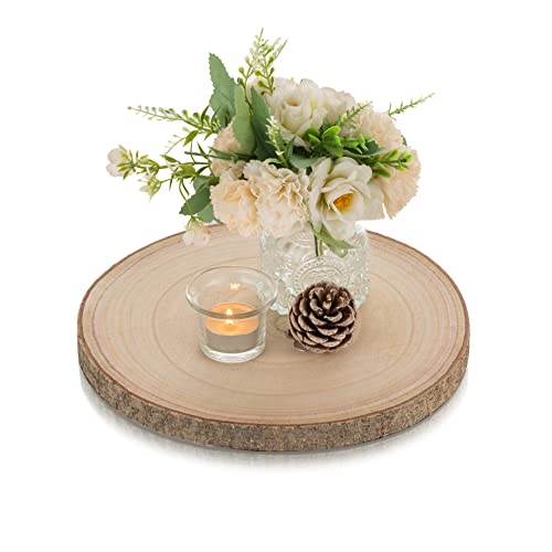 JAZZEEL - قطعة مركزية من الخشب البني، لوح بحافة طبيعية مع لحاء، طبق دائري غير مكتمل لحامل كعكة الزفاف، طبق تقديم طبيعي أو ديكور طاولة للحرف اليدوية مقاس (28 سم) من جازيل