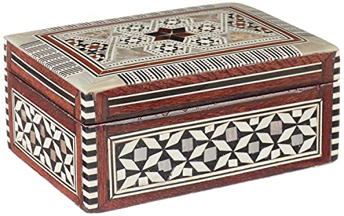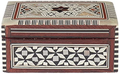 - زخرفة صدف البحر المتداخلة: استمتع بالحرفية التفصيلية لترصيع الصدف الطبيعي، مما يوفر أناقة فريدة مصنوعة يدويًا تجعل هذا الصندوق تذكارًا خاصًا.