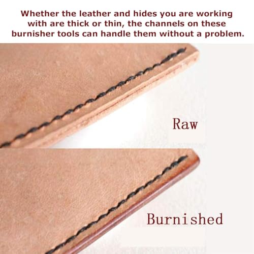 - يخلق لمسة نهائية احترافية: الصقل باستخدام هذه الأداة وعامل الترطيب يضغط ويغلق ألياف الجلد، مما يؤدي إلى حافة نظيفة ومستديرة ومتينة للغاية تقاوم الاهتراء.