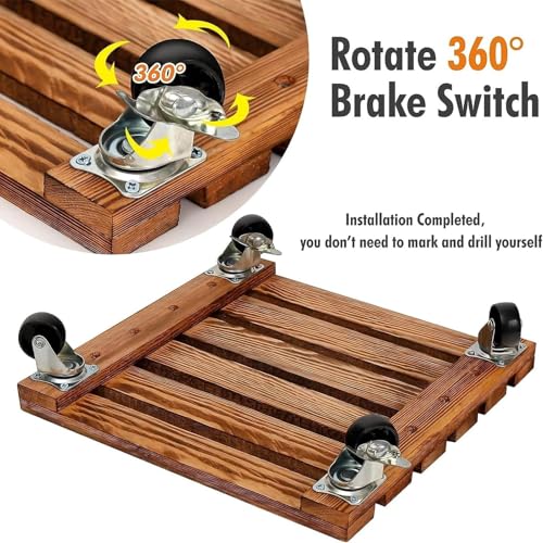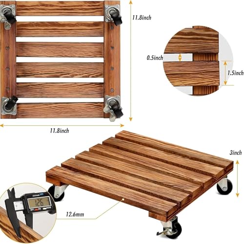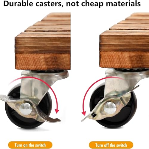 JAZZEEL - حامل نباتات دوار خشبي مربع مع عجلات دوارة قابلة للقفل حامل متين للاستخدام الداخلي والخارجي تستخدم عربة نقل الزهور في الفناء.من جازيل، عبوة من 2 قطعة