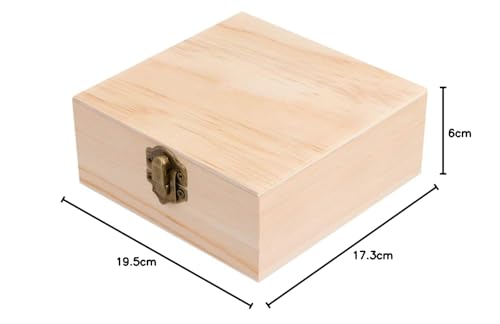 JAZZEEL - صندوق مجوهرات خشبي مربع غير مكتمل مع غطاء ومشبك من جازيل، صندوق تخزين للحرف اليدوية للتذكارات والهدايا وديكور المنزل وحفلات الزفاف، تصميم جاهز للرسم والتخصيص