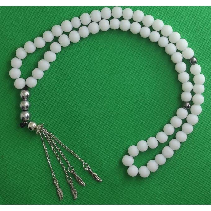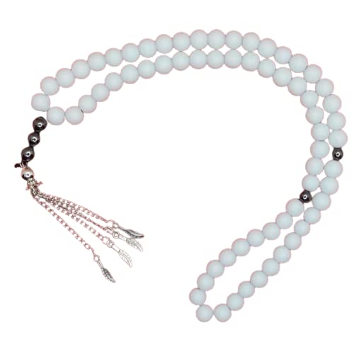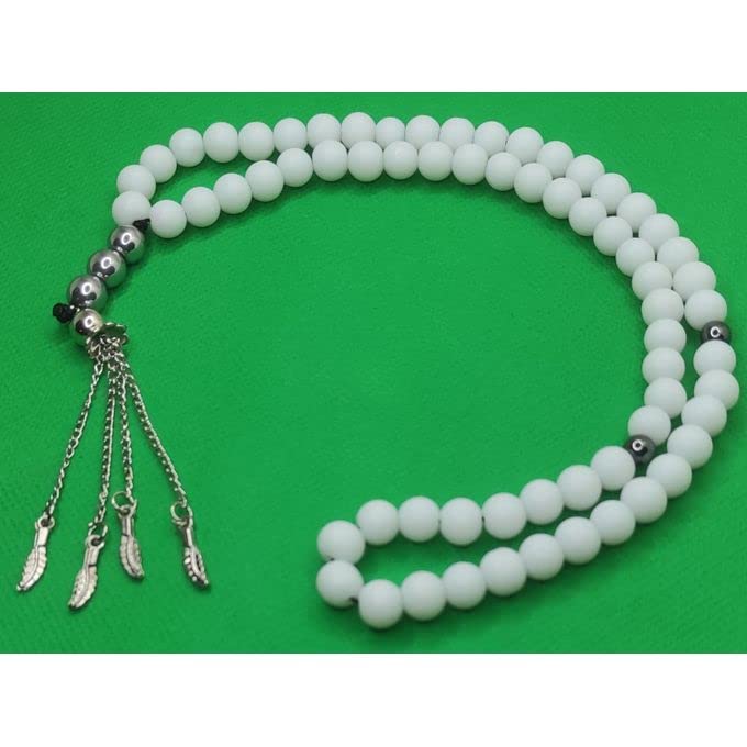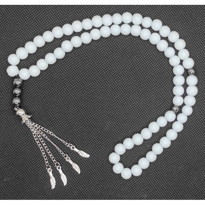 JAZZEEL - سبحة من احجار العقيق اليماني الابيض مع فواصل من الهيماتايت من جازيل، سبحة اسلامية للرجال والنساء، سبحة انيقة للتامل والذكر، هدية اسلامية روحية فاخرة