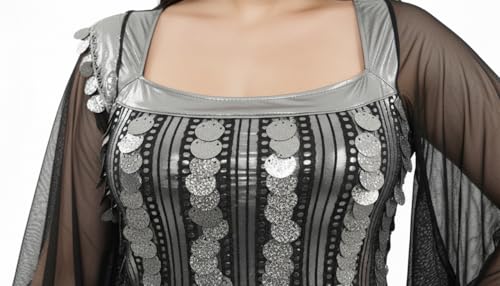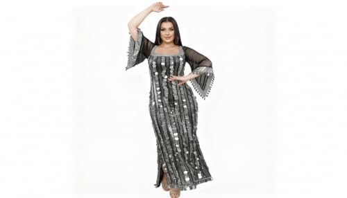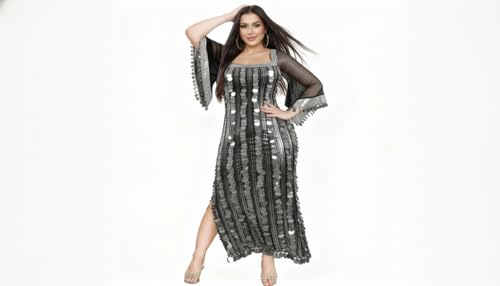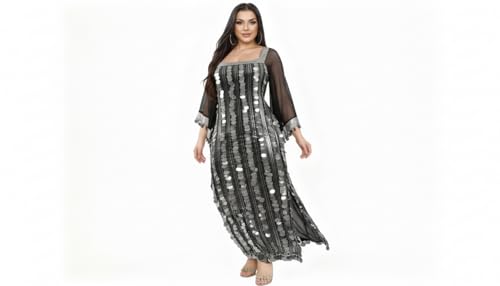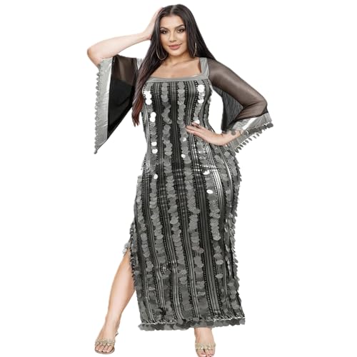 JAZZEEL - فستان لانجري بتصميم ضيق مخطط بالترتر مع أكمام شفافة وفتحة جانبية للنساء من جازيل، قطعة واحدة - ملابس نوم للراحة المنزلية والمناسبات الخاصة