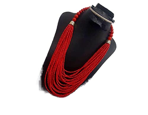 JAZZEEL - عقد مطرز بالخرز الأحمر للنساء، اكسسوار عصري فريد مصنوع يدويا لها من جازيل