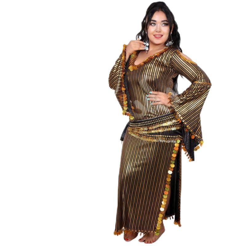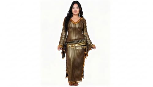 JAZZEEL - فستان استرخاء للنساء مزين بالترتر من جازيل، فستان منزلي من القماش المرن باكمام واسعة وفتحة جانبية، قطعة واحدة مريحة للنساء