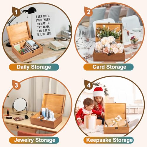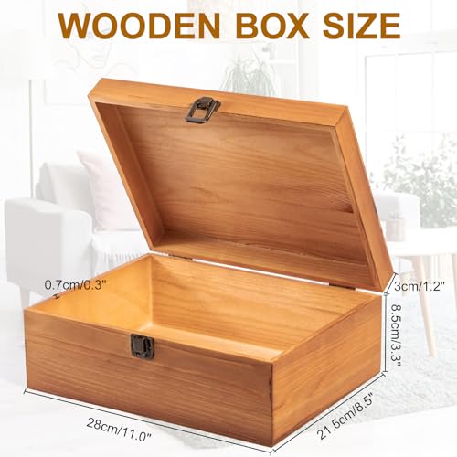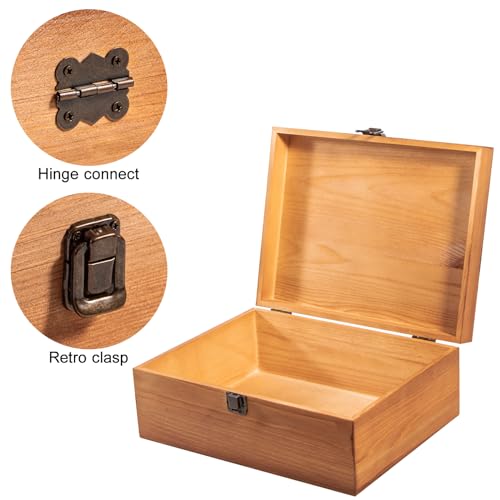 JAZZEEL - صندوق خشبي مع غطاء ومزلاج من جازيل، صندوق تخزين خشبي 11.2×8.44×4.51 انش، صندوق تخزين خشبي للمجوهرات والادوات والالعاب، صندوق تذكاري غير مكتمل للفنون والحرف اليدوية وعشاق الاعمال اليدوية، خشب طبيعي