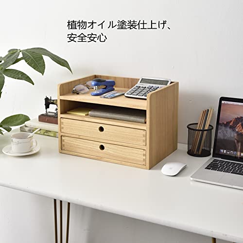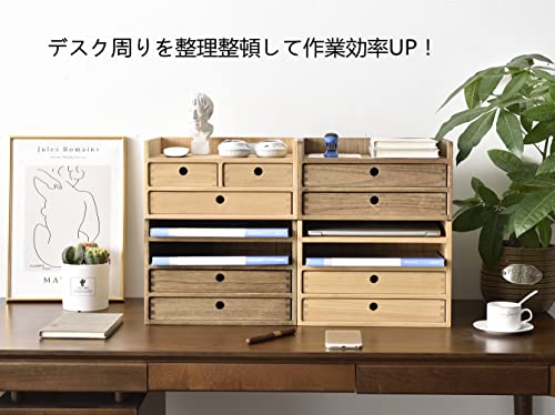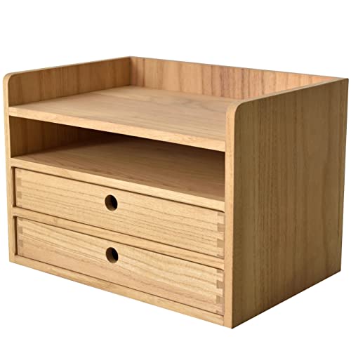 JAZZEEL - رف خشبي لسطح المكتب من جازيل، حافظة خطابات بادراج، صينية متعددة الطبقات، صندوق تخزين مستندات طبيعي لاغراض المكتب الصغيرة، منظم قوي لفرز الملفات، صندوق قرطاسية شديد التحمل.