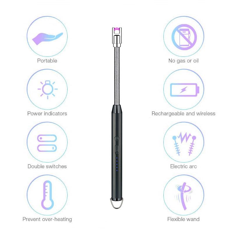 • ولاعة قابلة لإعادة الشحن مع مؤشر البطارية: نظرًا لوجود مؤشر بطارية مفيد للغاية على الولاعة القوسية، فستعرف متى يجب عليك إعطائها للشحن. كما أن الشحن السريع سيحافظ على هذه الولاعة للشموع تعمل لعدة أيام. سيستمر وقت الإشعال لمدة 8 ثوانٍ ثم يتم إيقاف التشغيل تلقائيًا، اضغط على الإشعال مرة أخرى، وستستمر ولاعة الغاز في الإشعال.