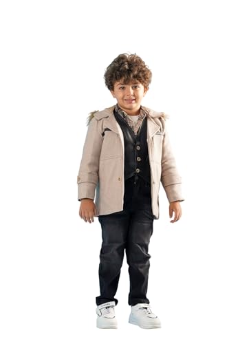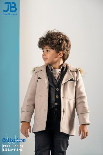 JB Jaber Brothers - طقم ملابس شتوية للأولاد من جيه بي جابر براذرز، طقم جاكيت وقميص وفيست جلد وتيشرت وبنطلون جينز، 5 قطع