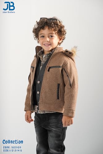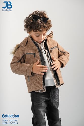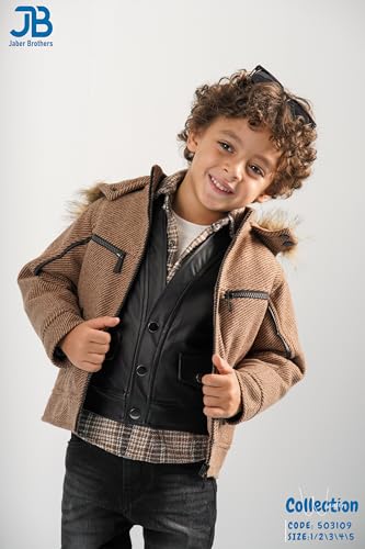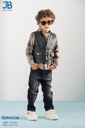 JB Jaber Brothers - طقم ملابس شتوية للاولاد مكون من 5 قطع من جيه بي جابر براذرز - جاكيت وسترة جلدية وقميص وتي شيرت وبنطلون جينز