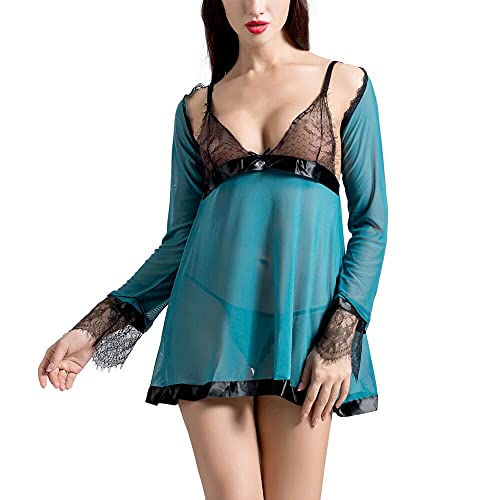 jb - قميص نوم بيبي دول شفاف دانتيل باطراف لامعة وفتحة ظهر مع بوليرو للنساء من جيه بي