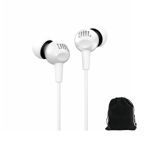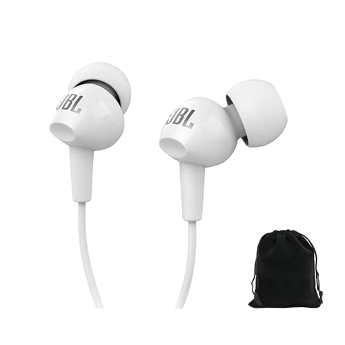 JBL - سماعة أذن سلكية C100SI مع ميكروفون من جيه بي ال، تتضمن شنطة حمل (أبيض)