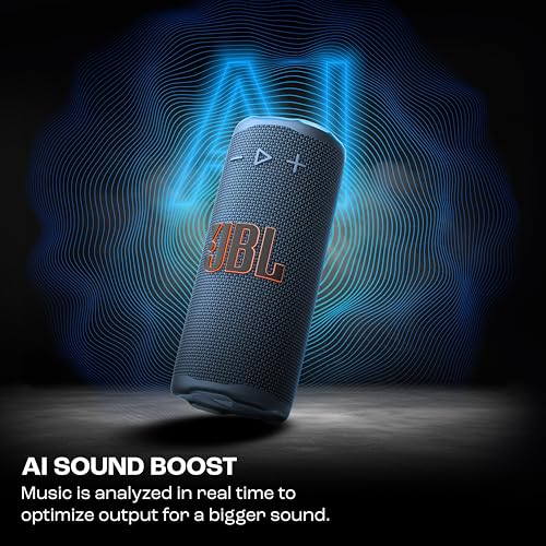 JBL - مكبر صوت جريب بلوتوث مدمج، صوت جيه بي ال برو مع معزز صوت بالذكاء الصناعي، مقاوم للماء والغبار تصنيف IP68، ضوء محيطي، تشغيل يصل إلى 14 ساعة، مكبر صوت اوراكاست متعدد، تطبيق JBL محمول، أزرق من جيه بي ال