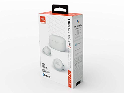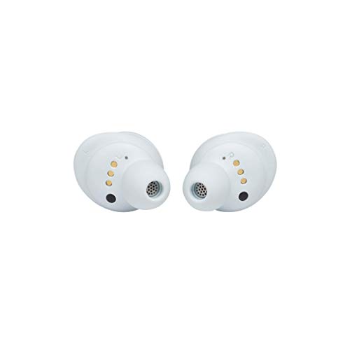 JBL - سماعات اذن لاسلكية ليف فري مقاومة للماء من جيه بي ال، بتقنية بلوتوث ونظام صوت هاي فاي وخاصية الغاء الضوضاء مع ميكروفون وصندوق شحن - بلون ابيض، في الاذن