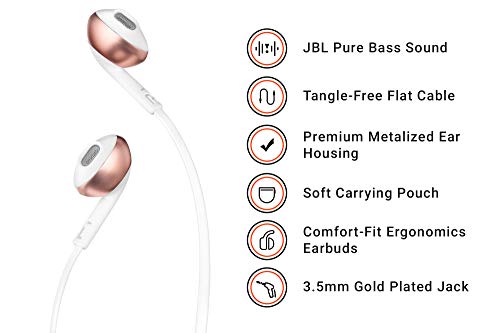 Harman - سماعة أذن سلكية من جيه بي ال، لون روز جولد، موديل T205RGD