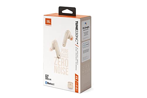 JBL - سماعة أذن ترو لاسلكية بخاصية إلغاء الضوضاء من جيه بي ال، صوت باس نقي، ايه ان سي + صوت محيطي ذكي، 4 ميكروفونات وبطارية تدوم 40 ساعة مقاومة للماء والعرق ومريحة - لون رملي، موديل 230NCTWS