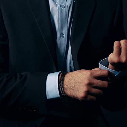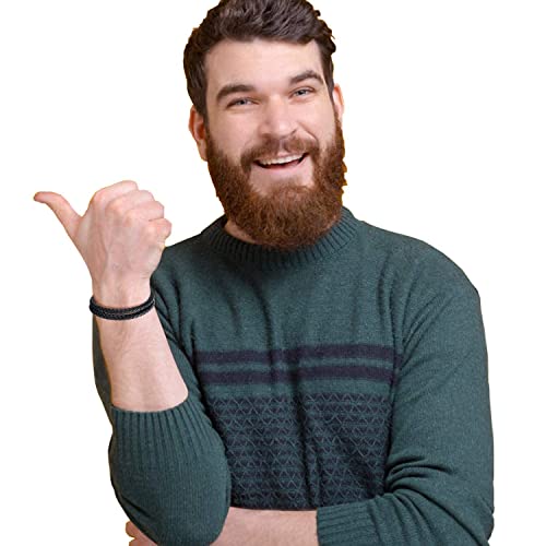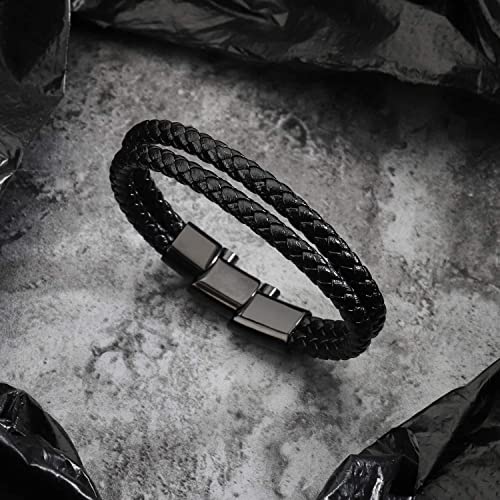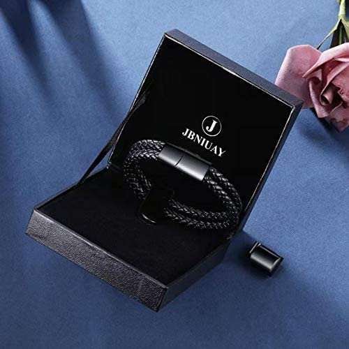 Generic - سوار جلد مضفر بمشبك مغناطيسي للرجال من جبنيواي (اسود، 17 سم)