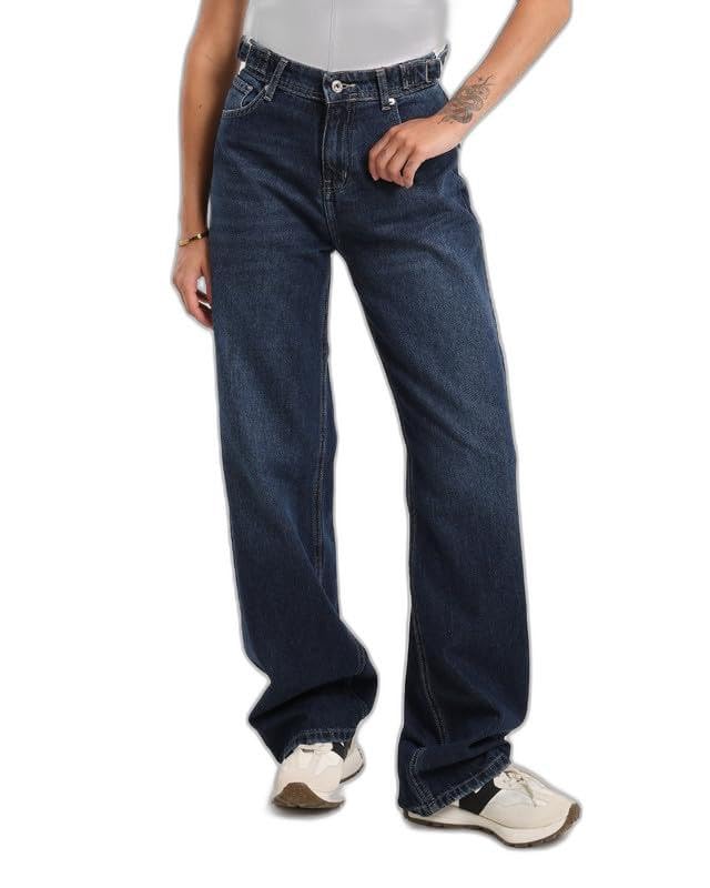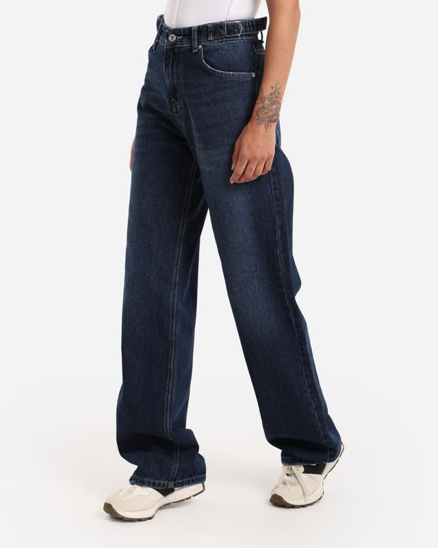 JBS Denim - جي بي اس دينيم بنطلون جينز حريمى وايد ليج حزام ازرق اللون 1477