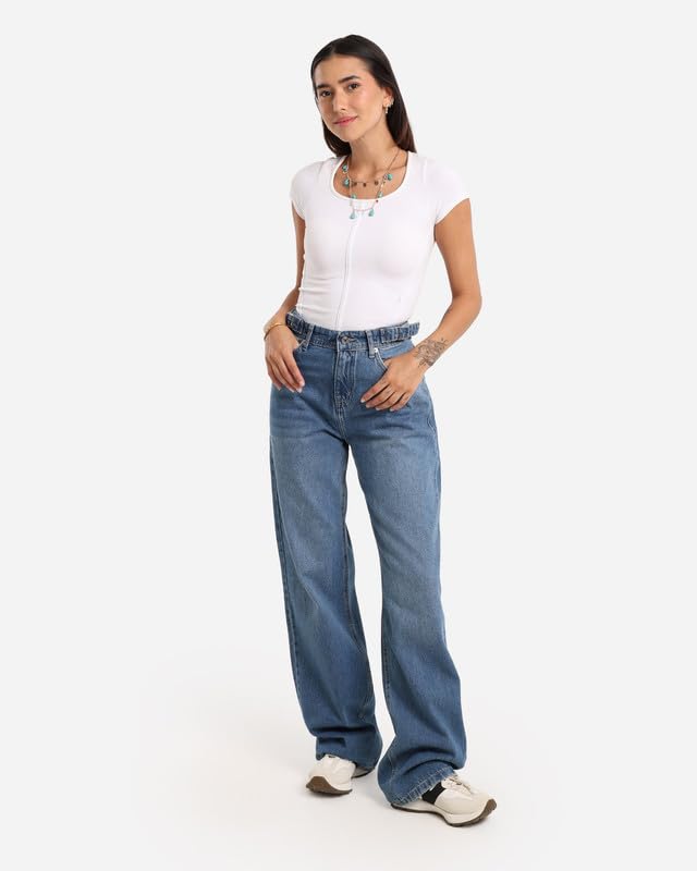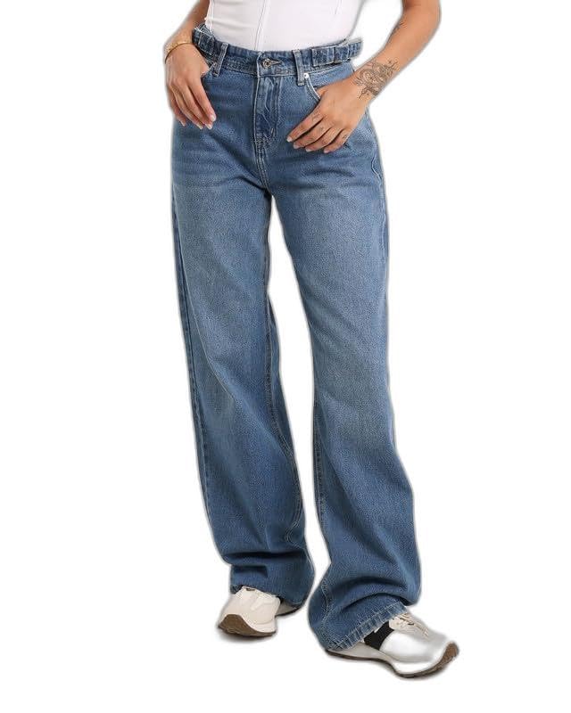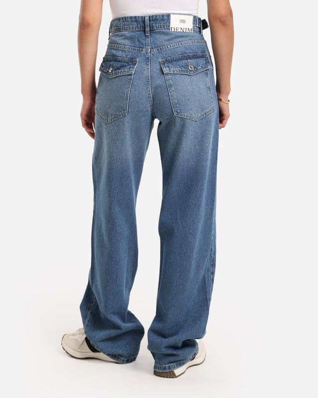 JBS Denim - جي بي اس دينيم بنطلون جينز حريمى وايد ليج حزام ازرق فاتح اللون 1476