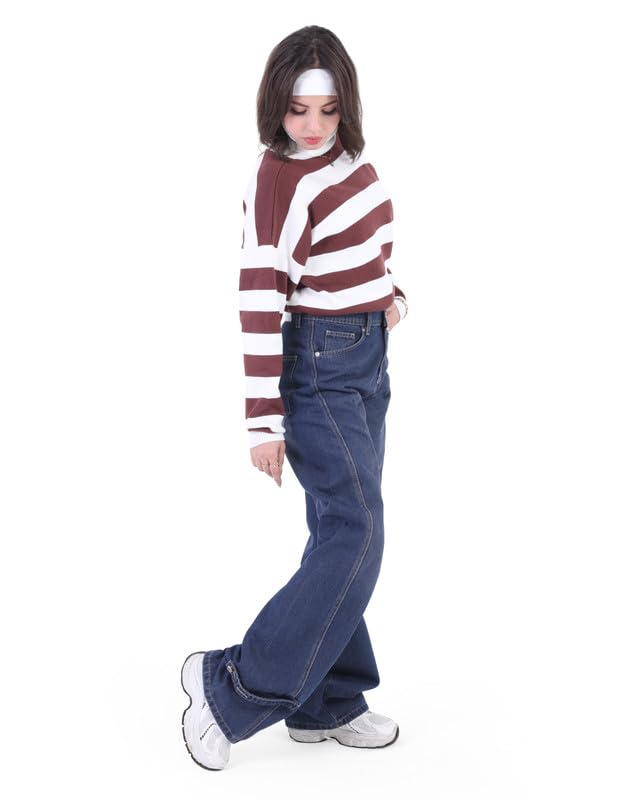 JBS Denim - جي بي اس دينيم بنطلون جينز حريمى وايد ليج بولت ازرق غامق اللون 1519