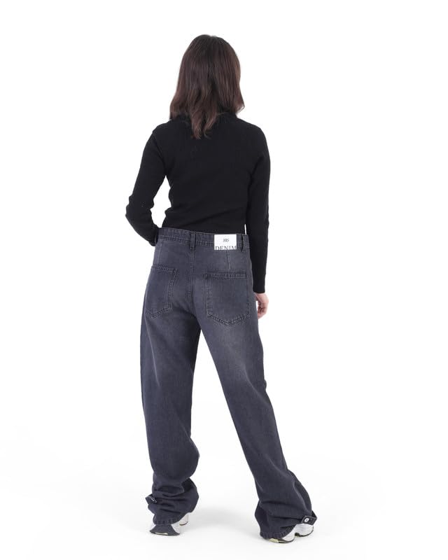 JBS Denim - جي بي اس دينيم بنطلون جينز حريمى وايد ليج بولت رمادى غامق اللون 1521