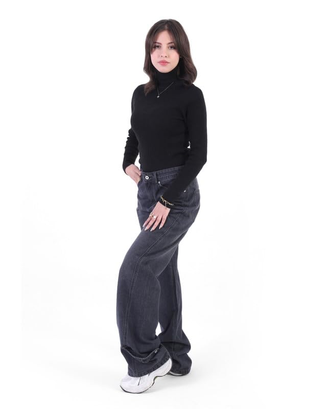 جي بي دينيم بنطلون جينز حريمى وايد ليج بولت رمادى غامق اللون حجم: 28