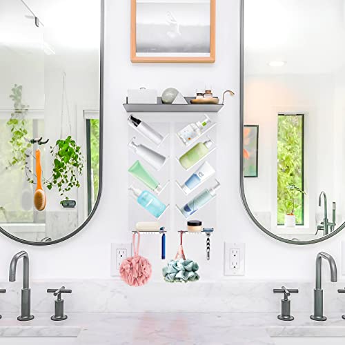 - 【حافظ على حمامك مرتبًا】: تصميم منظم حامل الشامبو الخاص بنا مع 8 فتحات سعة كبيرة لحمل الزجاجات الكبيرة حتى 1 لتر بأمان. يمكن أن تستوعب المساحة الإضافية الأشياء الصغيرة مثل شفرات الحلاقة والصابون وما إلى ذلك.