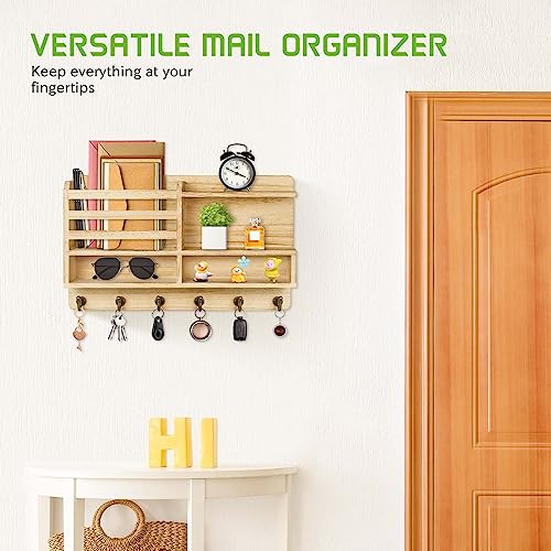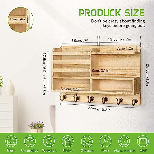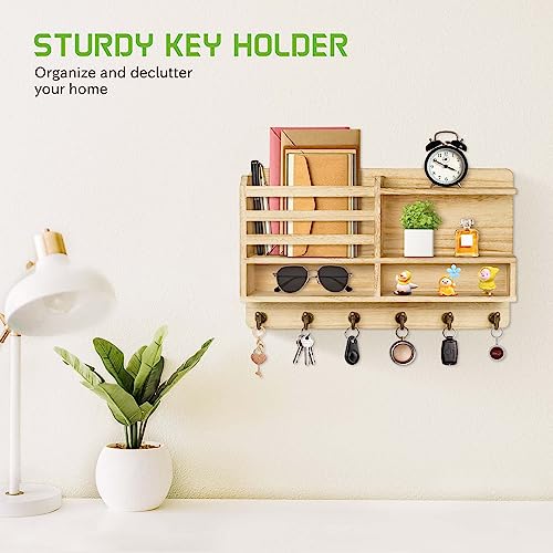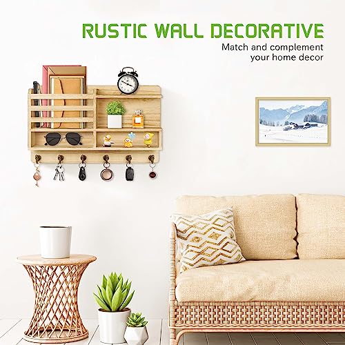 JC-Houser - حامل بريد ومفاتيح للجدار من جيه سي هاوسر خشبي منظم يثبت على الحائط مع 6 خطافات للمفاتيح مفاتيح بتصميم ريفي رف للرسائل وسلسلة الكلاب والمدخل كاري الحد الأقصى للوزن الموصى به: 30.0 كيلوجرام