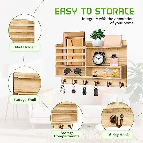 - 【حامل مفاتيح متعدد الاستخدامات مع رف】: قم بتنظيم البريد العائلي بشكل مريح والحفاظ على سهولة الوصول إلى جميع مفاتيحك. مع أرفف ومساحة إضافية، يمكنها أيضًا حمل أشياء مثل النظارات الشمسية والمحافظ، مما يقلل من فوضى الردهة.