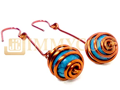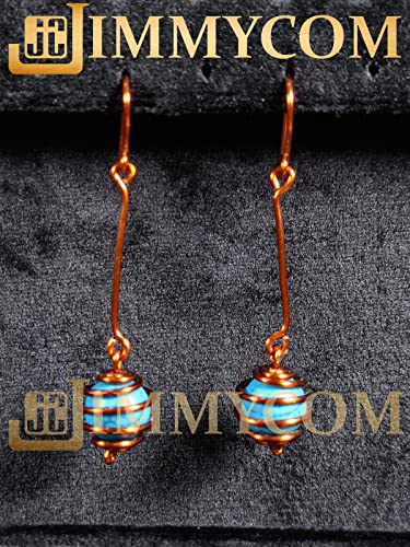 (JC) jimmycom - اقراط متدلية طويلة من النحاس والاحجار للنساء مجموعة فريدة نوعها اكسسوارات نحاسية مطلية ازرق فيروزي جاي سي جيميكوم