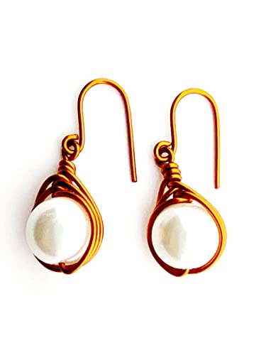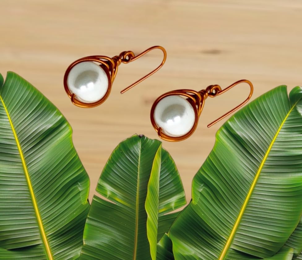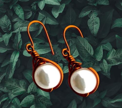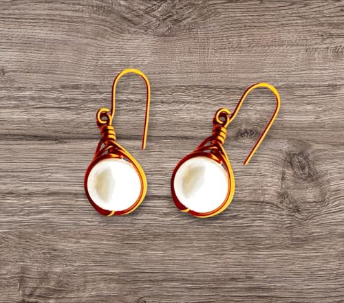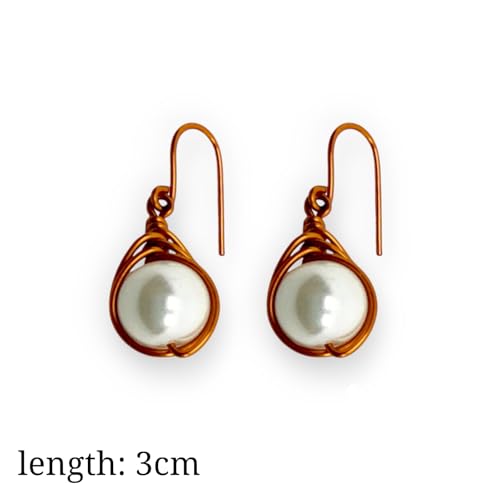 (JC) jimmycom - جيه سي اقراط متدلية قصيرة من النحاس والاحجار للنساء فريدة نوعها اكسسوارات نحاسية مطلية لؤلؤ ابيض جاي جيميكوم