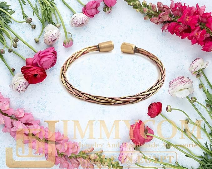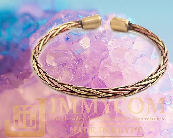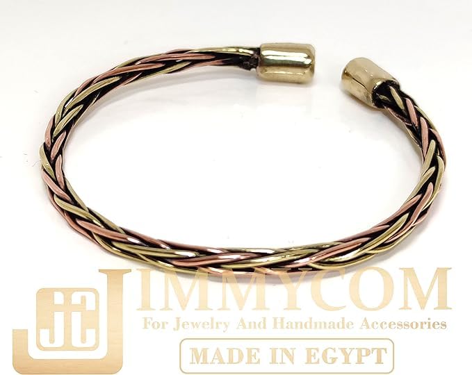 (JC) jimmycom - سوار عريض نحاسي اصفر واحمر اساور نحاسية ملتوية للرجال للنساء حلقية