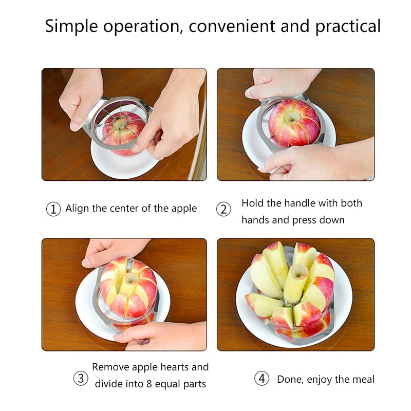 - 【سهل الاستخدام】يمكنك وضعه على التفاح، واضغط لأسفل، ويمكن تقسيم التفاح بسهولة إلى 8 قطع.