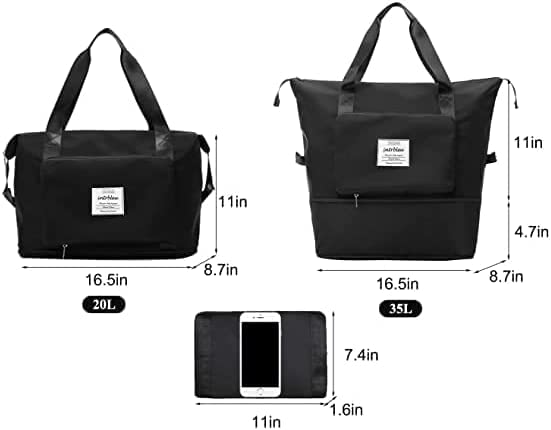 JD FRESH - شنطة دفل للنساء قابلة للطي مناسبة شنطة سفر وشنطة مستحضرات تجميل للسفر من جيه دي فريش, أسود، نايلون