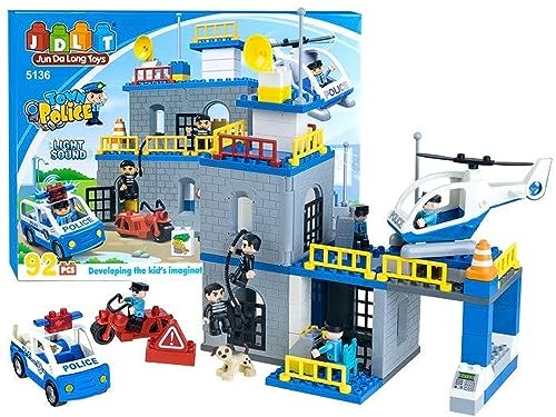 JDLT - مجموعة مكعبات تركيب من سلسلة شرطة المدينة من جيه دي ال تي، 92 قطعة مع اضواء واصوات، بلاستيك