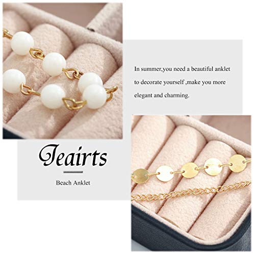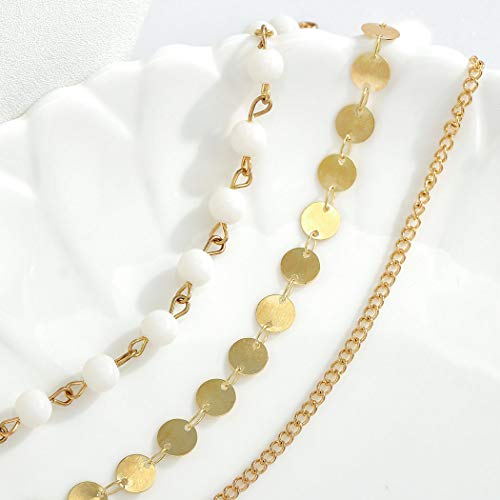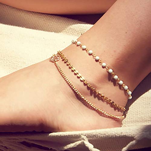 Jeairts - سوار كاحل مطرز بالترتر الذهبي بتصميم بوهو، خلخال متعدد الطبقات، سلسلة قدم للشاطئ، مجوهرات للنساء والفتيات
