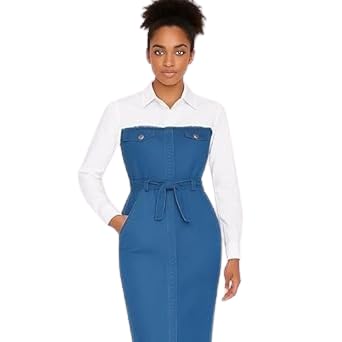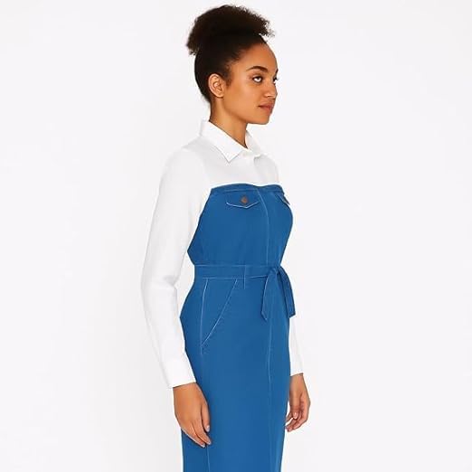 عام - فستان جينز أبيض مع حزام خصر - خامة دينيم رباعية مريحة وعصرية - 80-95K (أزرق) (مقاس 2)